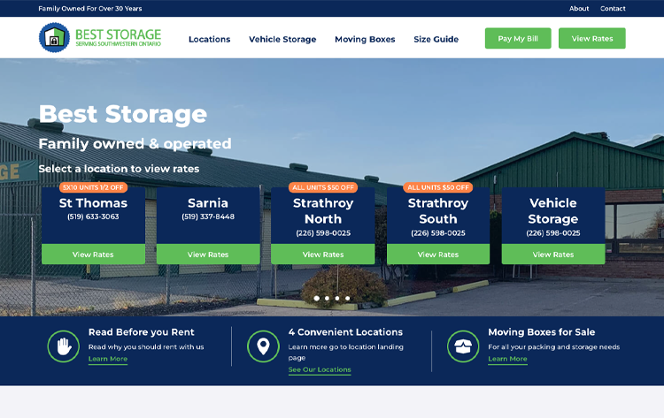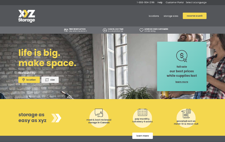 The self storage industry is becoming much more competitive everyday, as leads are coming from online. Below you’ll find examples of some recent work we did for the industry – fully custom WordPress websites to create an enjoyable and user-friendly experience for customers. All our websites are built with best SEO practices in mind to make sure your website ranks well against competitors on Google. With most of our self storage facility clients, we integrate the unit pages with their self storage CRM system so that rentals and reservations are placed directly into their system to make it a seamless process for our clients and their customers. Check out the rest of our portfolio here.